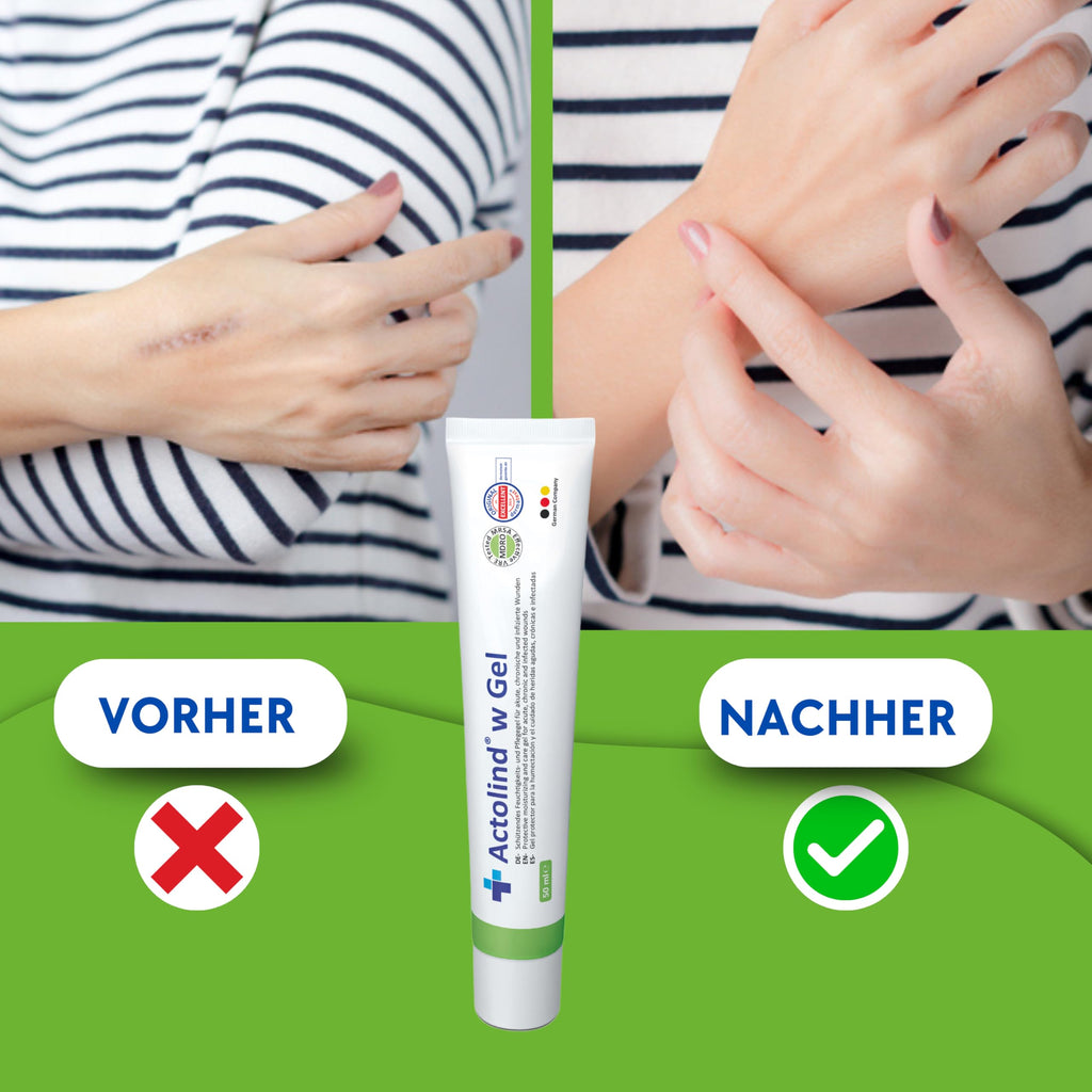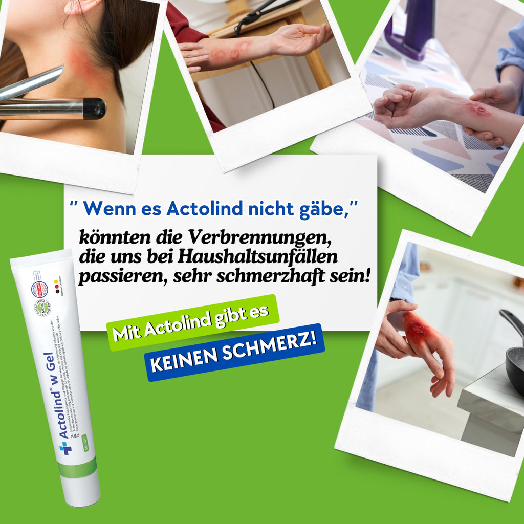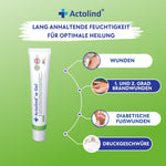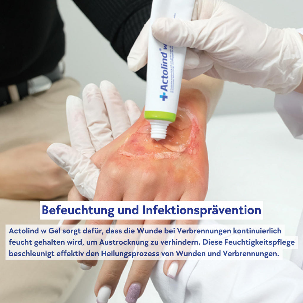 Actolind w Gel Dermatologisch getestet. ist ein schützendes Befeuchtungs- und Pflegegel, das in Verbindung mit medizinischen Geräten wie Verbänden, Wundauflagen, Pads und Wundfüllern bei akuten oder chronischen Wunden sowie Verbrennungen ersten und zweiten Grades verwendet wird.
