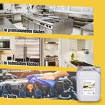• Entwickelt für professionelle Ansprüche: Dieser Hochleistungs-Entfetter wurde speziell für den gewerblichen Einsatz entwickelt und bietet zuverlässige Reinigungsergebnisse in Restaurants, Großküchen, Werkstätten und industriellen Betrieben.