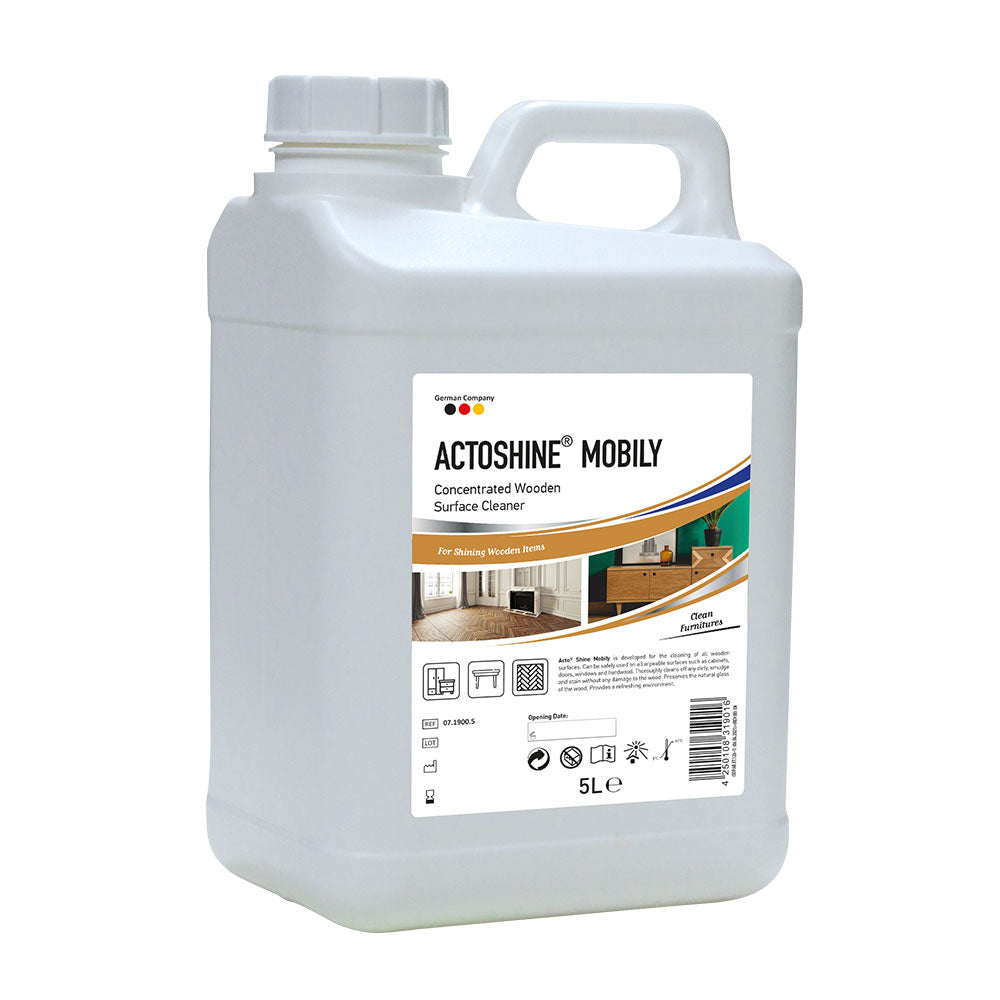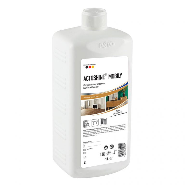 ACTO SHINE® MOBILY 1 L wurde für die Reinigung aller Holzoberflächen entwickelt. Kann sicher auf allen abwischbaren Oberflächen wie Schränken, Türen, Fenstern und Hartholz verwendet werden.